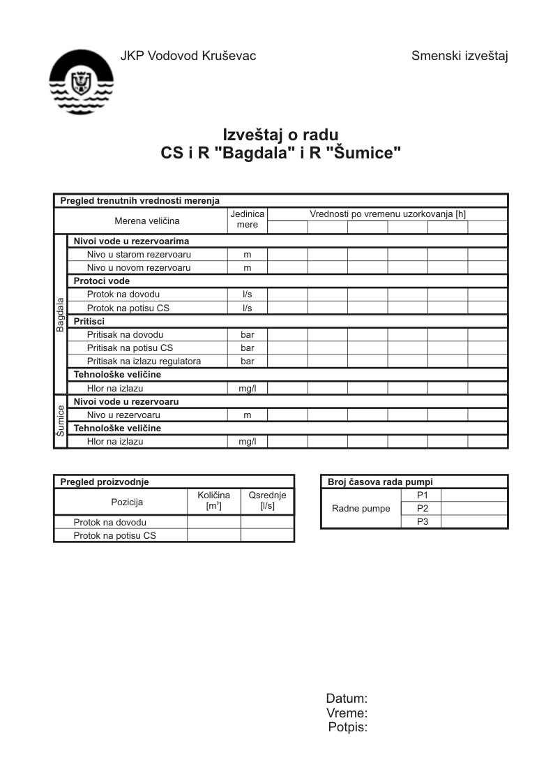 CSNU vodovodnim sistemom Kruševca – JKP “Vodovod” Kruševac